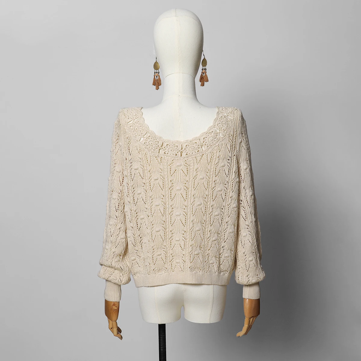 Свитер Женский вязаный крючком с цветочным узором, элегантный джемп...