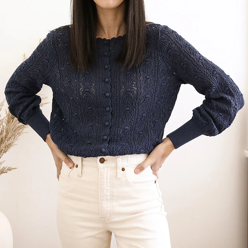 Женский вязаный кардиган с длинным рукавом, из органического хлопка