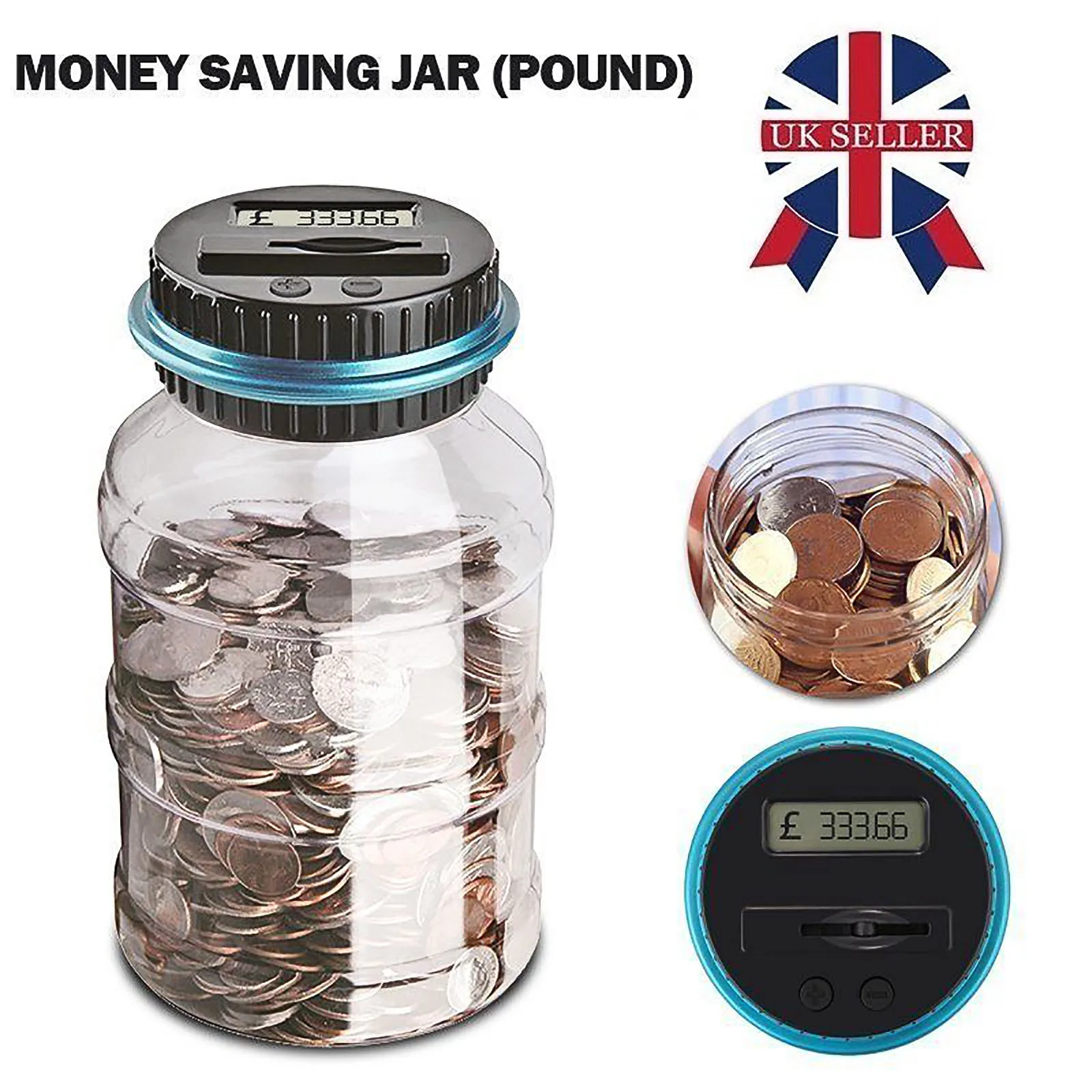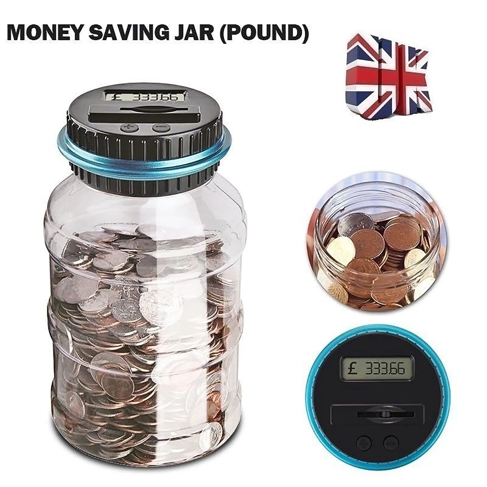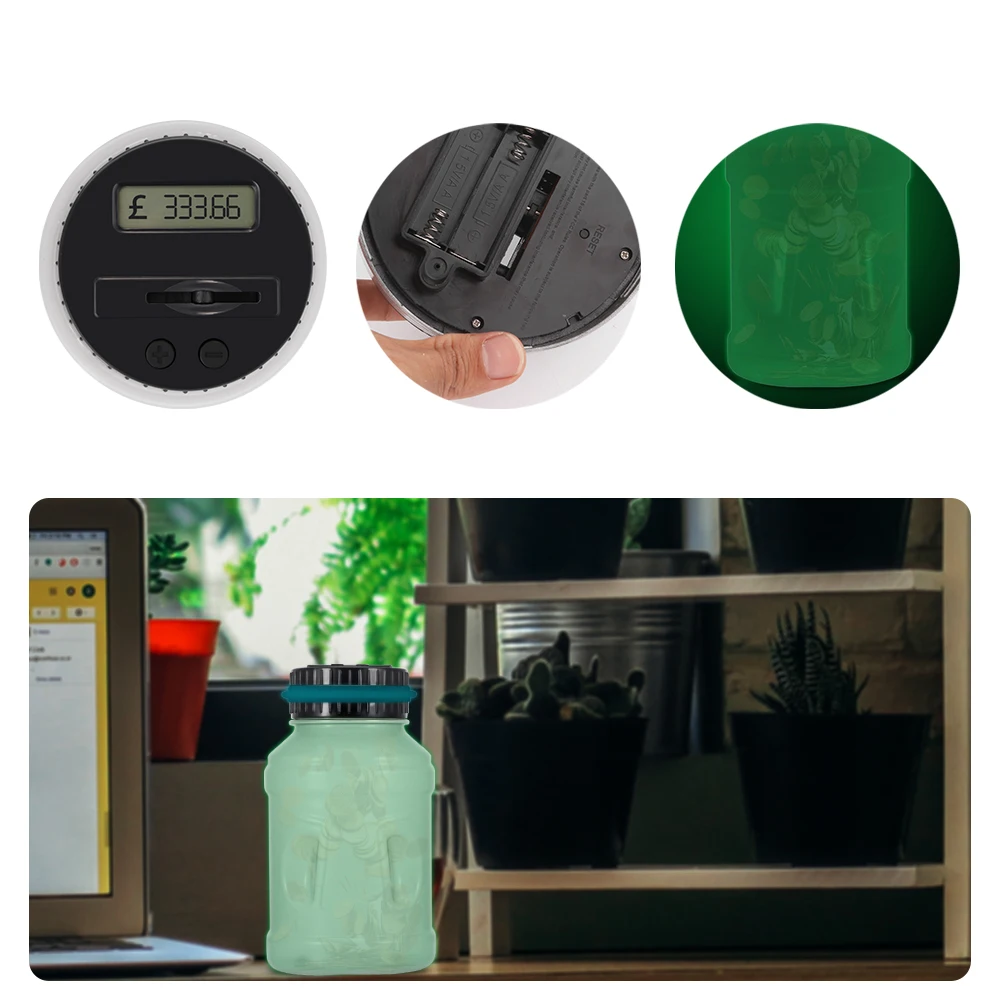 Эта прозрачная банка имеет ЖК-экран на крышке помогает считать ваши монеты, когда они проскальзывают через слот. Он точно подсчитывает ваши деньги и отображает общую сумму каждого депозита.