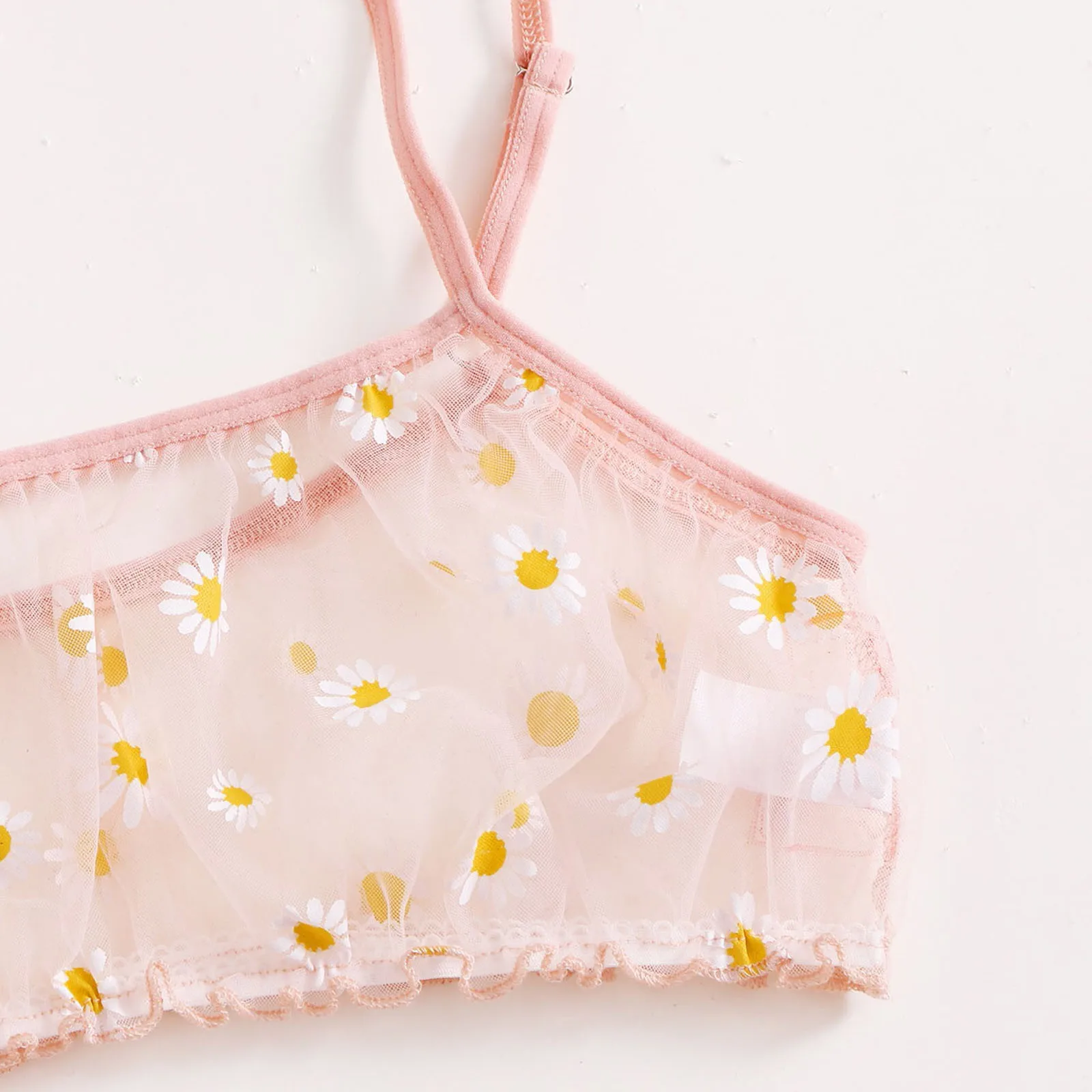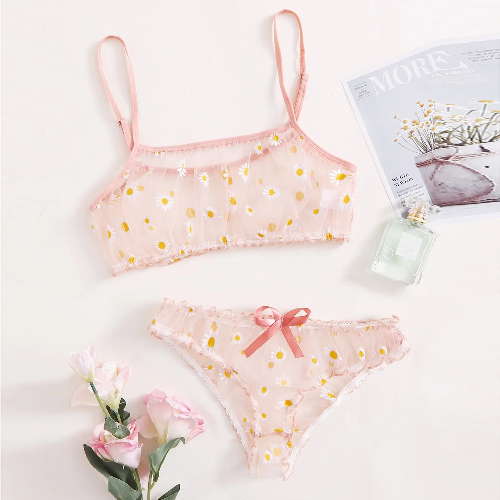 Комплект из 2 предметов, сексуальное женское соблазнительное нижнее белье с цветочным рисунком, комплект нижнего белья