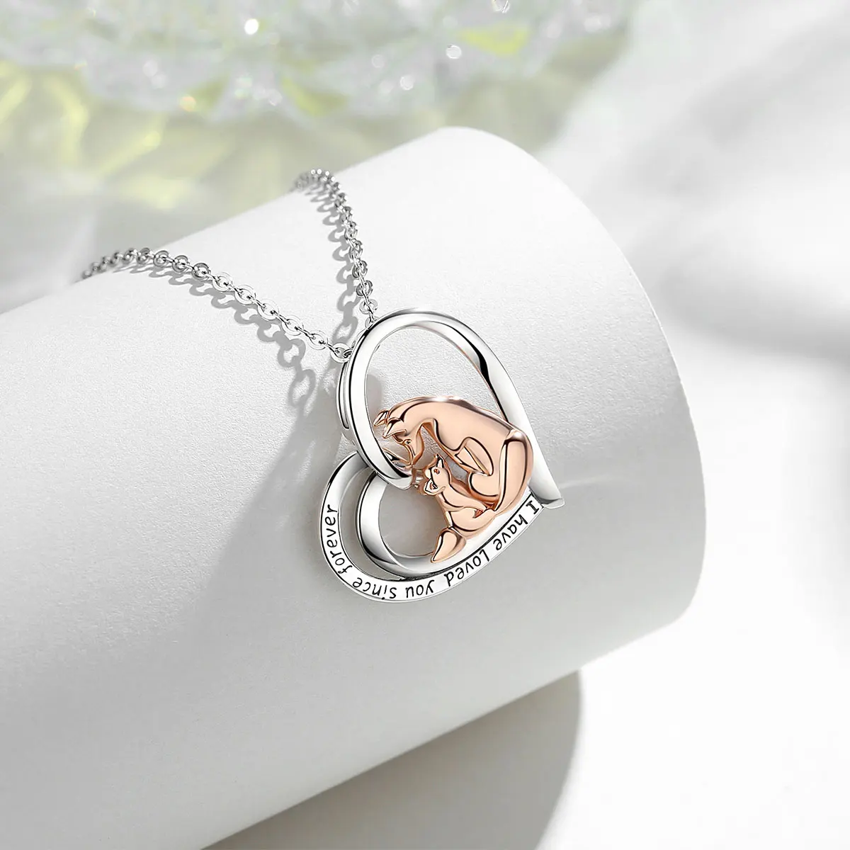 EUDORA, серебро 925 пробы, лиса, мама, ребенок, розовое золото, шей...