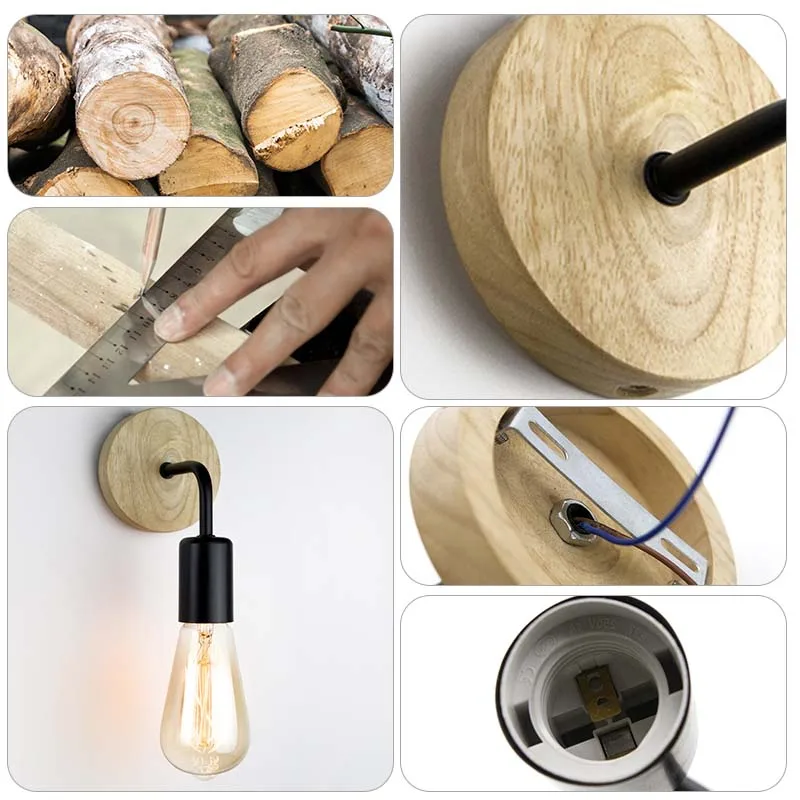 110V 220VNordic Wood Wall Lamp