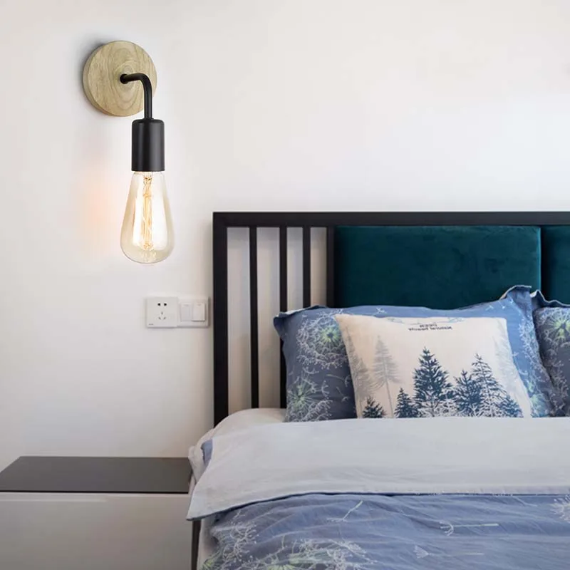 Скандинавская деревянная настенная лампа для спальни, 110 В, 220 В, минималистичные кованые железные Настенные светильники для гостиной, домашнее освещение, Декор