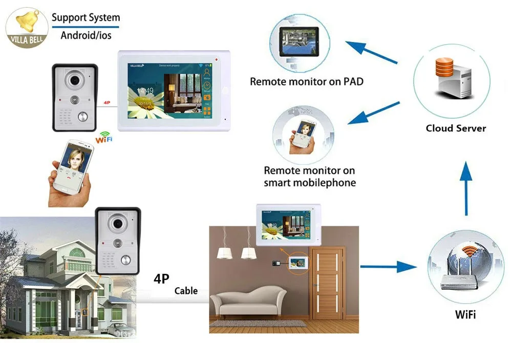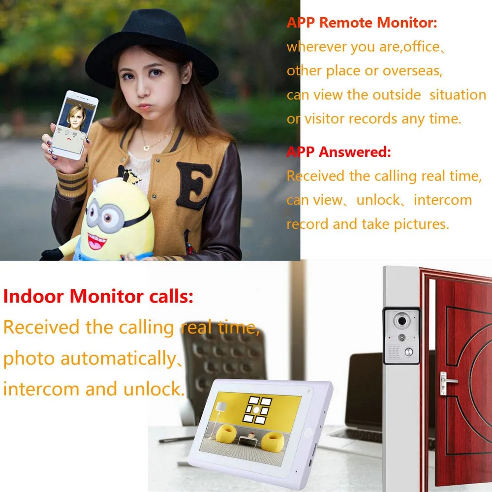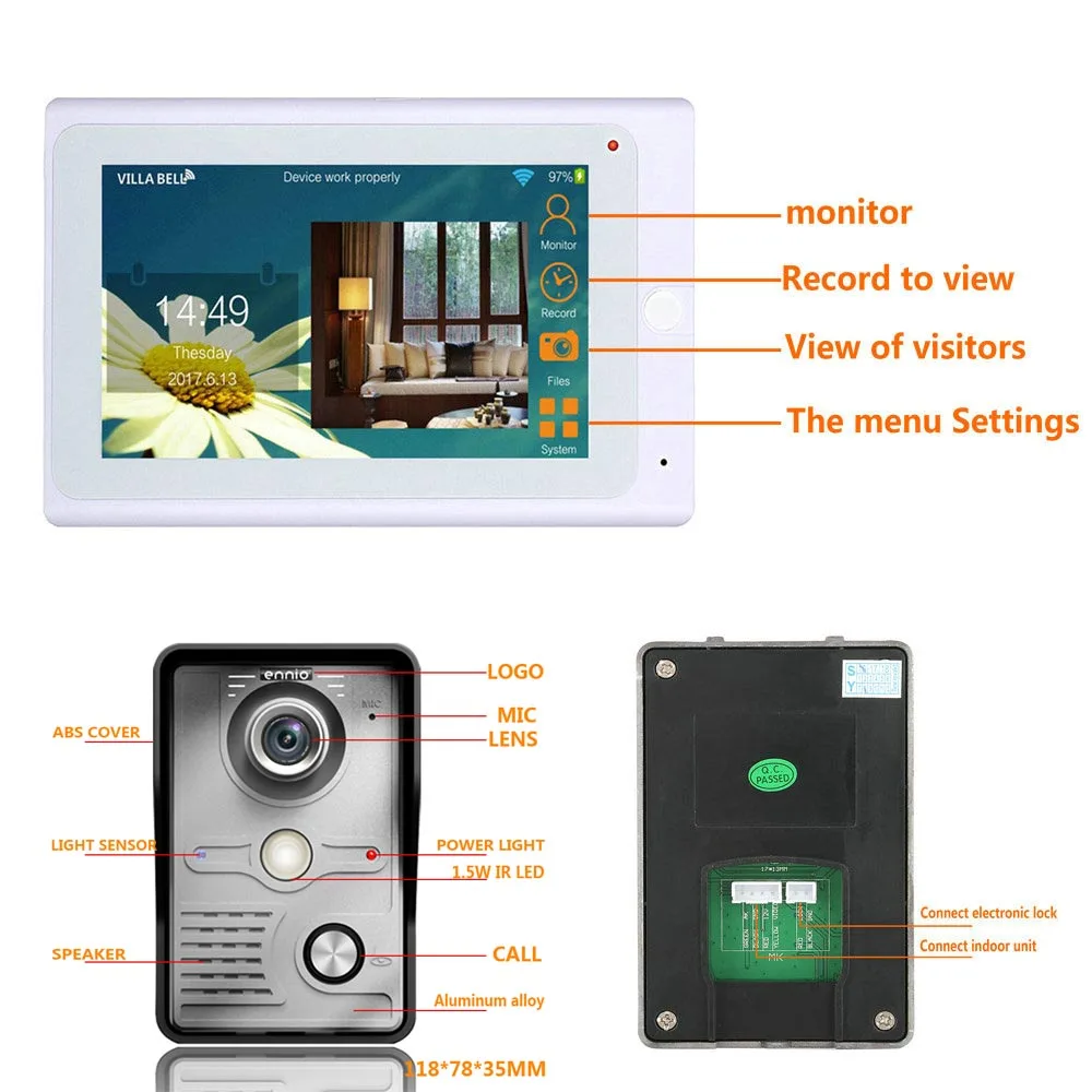 7 дюймов Беспроводнойпроводной Wifi IP видео-телефон двери дверной звонок Домофон Системы с IR-CUT HD 1000TVL проводной Камера Ночное видение