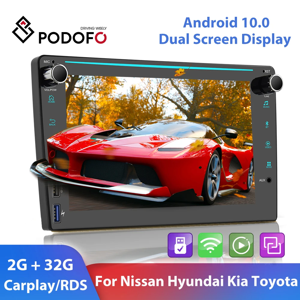 Автомагнитола Podofo, 2 Din, Android 10,0, 8 дюймов, GPS, FM, Bluetooth