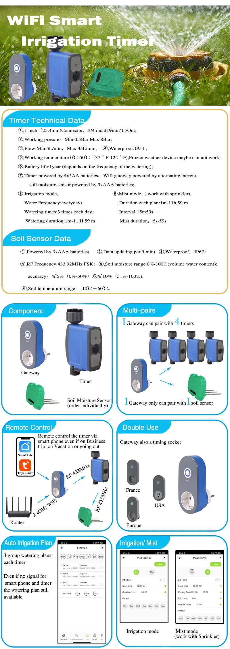 Таймер для полива сада, автоматический, Wi-Fi, Bluetooth-совместимый