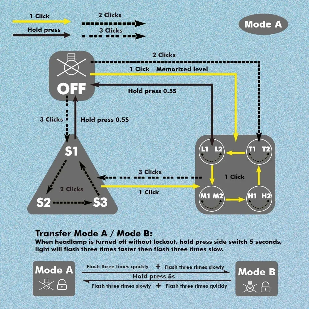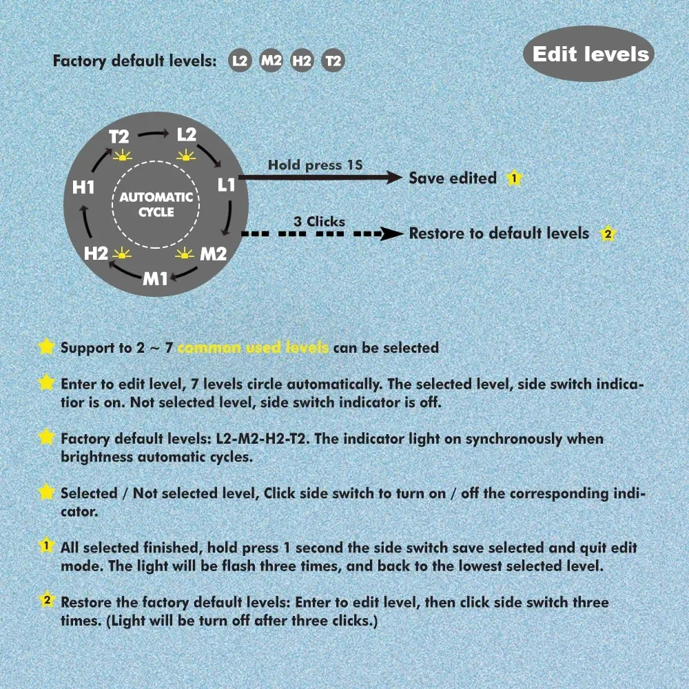 11. При выключении удерживайте кнопку, чтобы активировать функцию блокировки. Избегайте того, чтобы светильник включался непредвиденно.