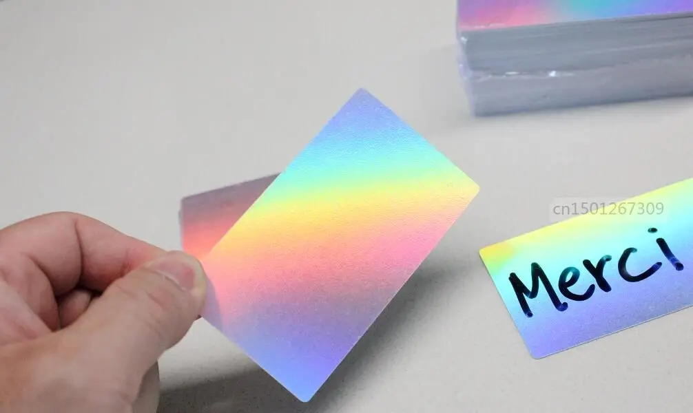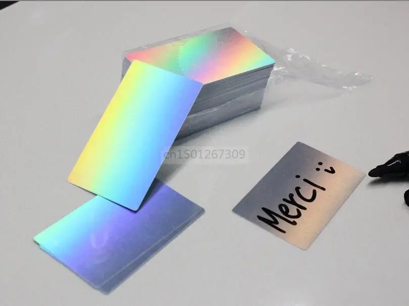 Толстые 0,35 мм Пустые серебряные голографические радужные цвета ПВХ Визитные карточки водостойкие 102050-вы выбираете количество