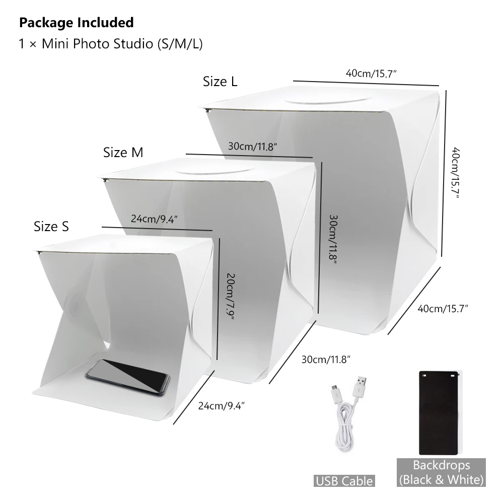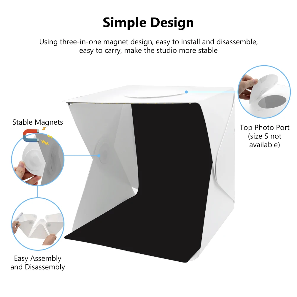 Складная конструкция, которая разворачивает совершенно новый уровень возможностей в фотографии смартфонов.Это позволяет каждому делать Потрясающие студийные фотографии с помощью смартфона с помощью простой настройки.Больше не нужно беспокоиться о том, чтобы делать высококачественные фотографии для ваших товаров в интернет-магазине.Холодный белый светодиодный светильник, достаточно яркий, чтобы обеспечить достаточные Люмены.