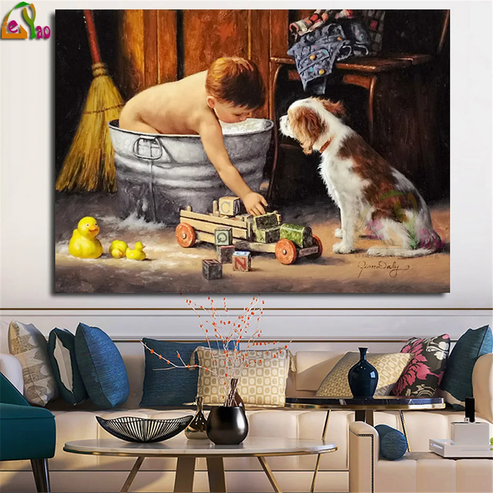 5D алмазов картина Маленький мальчик и собака камни в форме ромба круглыми стразами Стразы Алмазный Набор для вышивания крестиком мозаичный Декор для дома