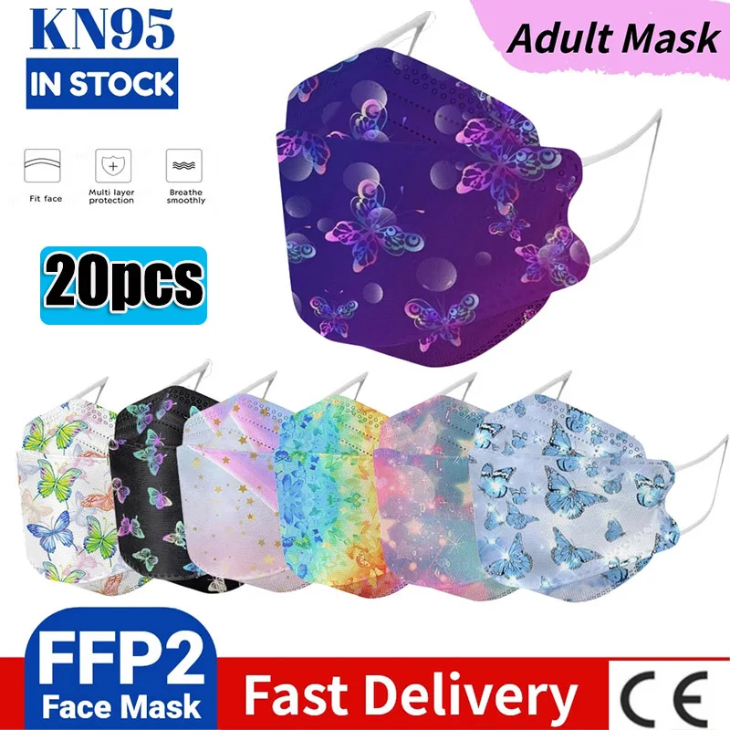 /20/50 шт маска ffp2 n95 рыбы Форма корейский маска на лицо модные пыли kf94mask 4 слоя защиты 3D печатных дышащие взрослые антивирусные маски