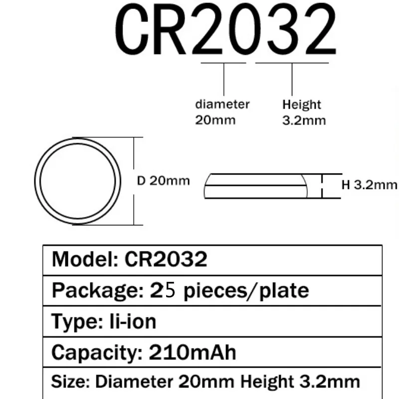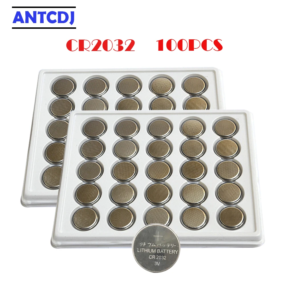 100 шт. CR2032 Antcdj Батарея Кнопка ячейки 3V литиевые батареи 210 мАч, ECR2032 BR2032 DL2032 для часы электронные игрушки пульт дистанционного управления