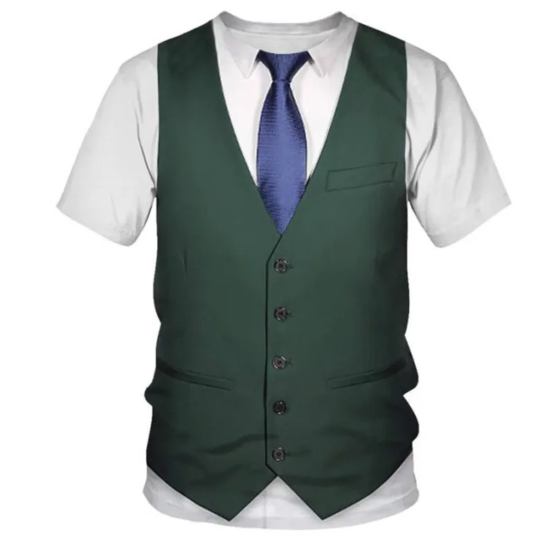 3D с принтом; Футболка с О-образным вырезом мужские поддельные костюм галстук-бабочка для смокинга рубашки с короткими рукавами в уличном стиле с имитацией костюма; Модная повседневная футболка 2021