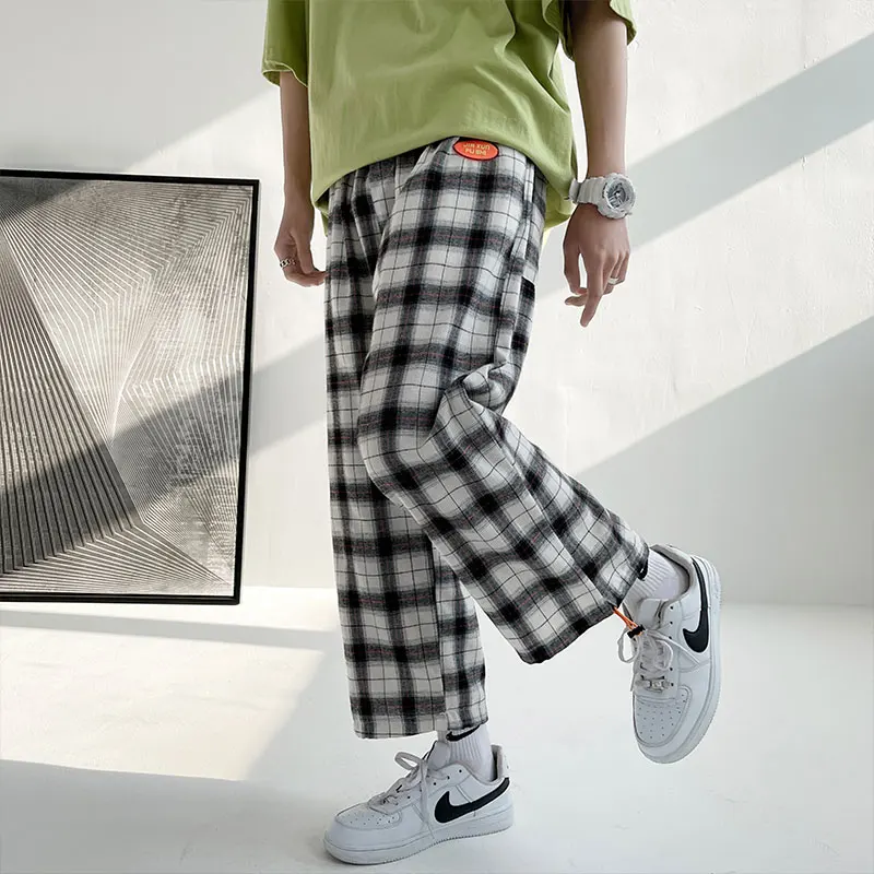 Мужские клетчатые брюки для бега мужские черные хлопковые комфортные брюки Летняя Повседневная Уличная свободные брюки японский модный тренировочные брюки