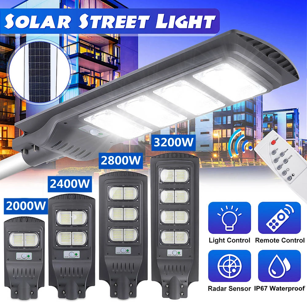 Уличный светильник 3200 Вт2800w2400w2000w 420LED, на солнечной батарее, водонепроницаемый, с датчиком движения, с дистанционным управлением, наружное освещение, охранная лампа