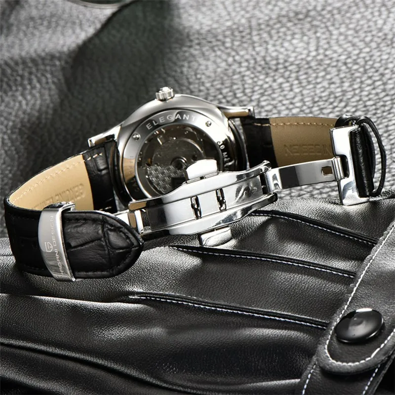 Часы мужские механические, водонепроницаемые, с кожаным ремешком, в деловом стиле, 2021