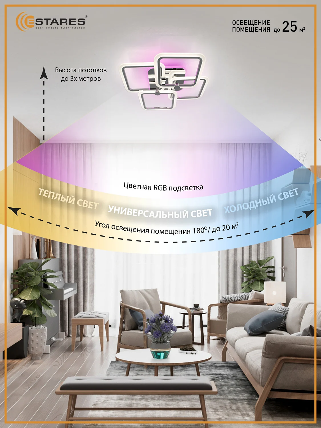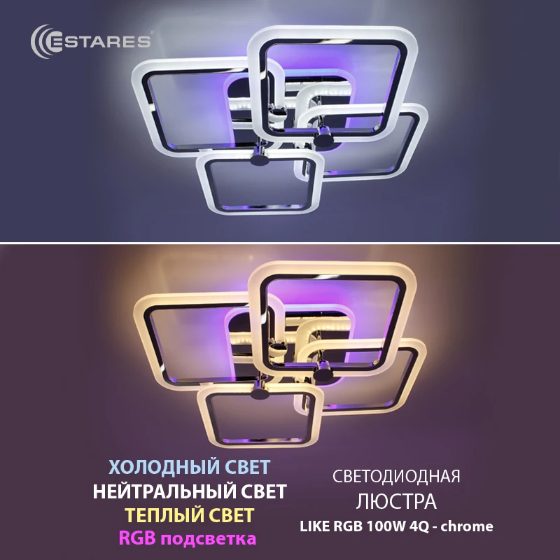Управляемая светодиодная люстра LIKE RGB 100W 4Q-560120-RC-CHROMEOPAL-220-IP20