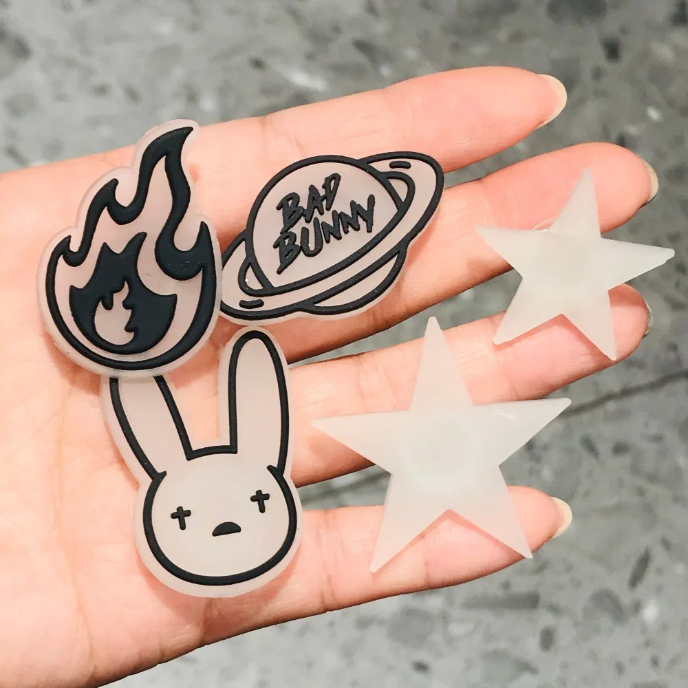 Одиночная распродажа, светящийся плохой кролик, мультяшный кролик из ПВХ, подвески для обуви, светящиеся ночью звезды, аксессуары сделай сам, Croc Jibz