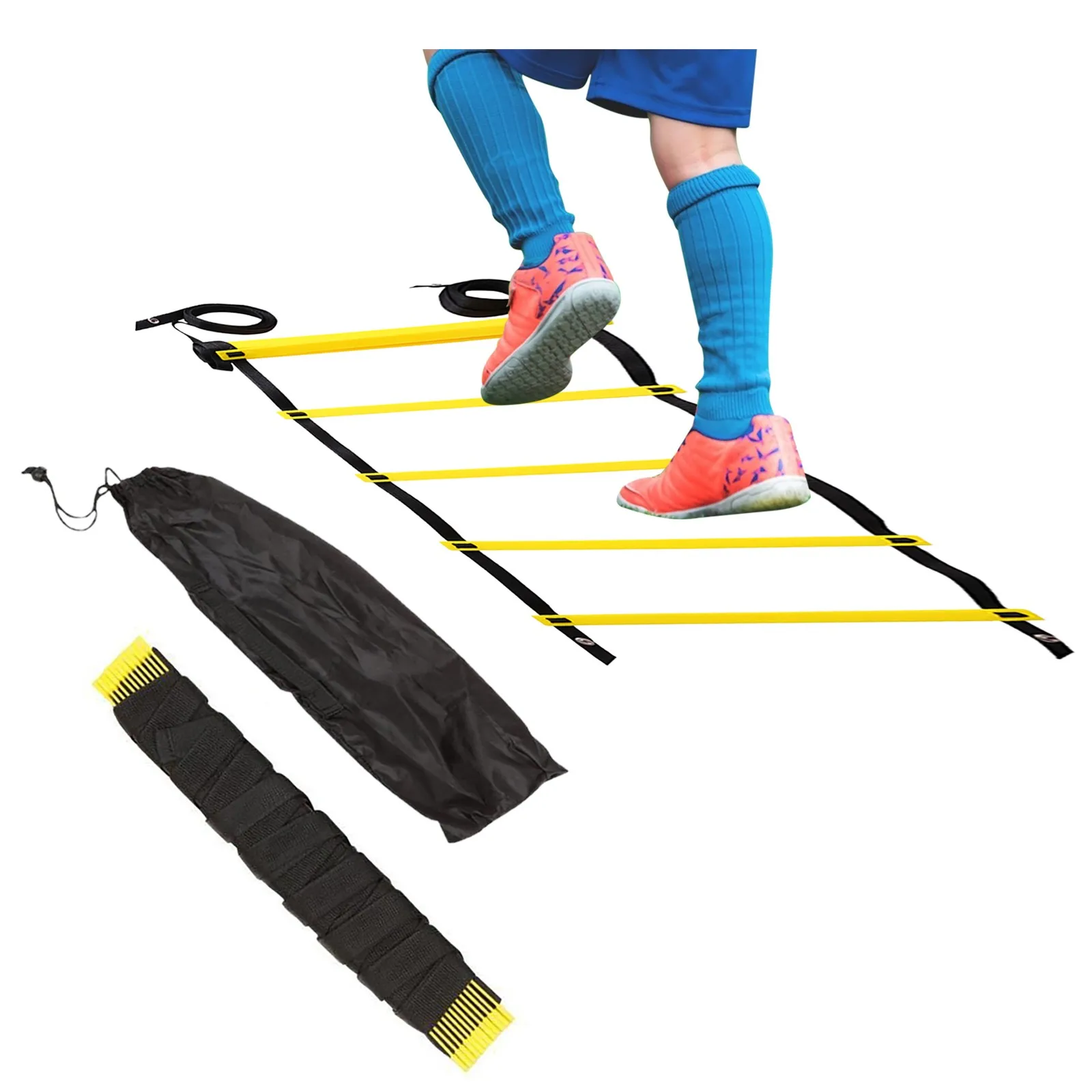 Лестница для тренировок ног, 4 Руна, 2 м, желтая и черная, для скоростного футбола, футбола, фитнеса