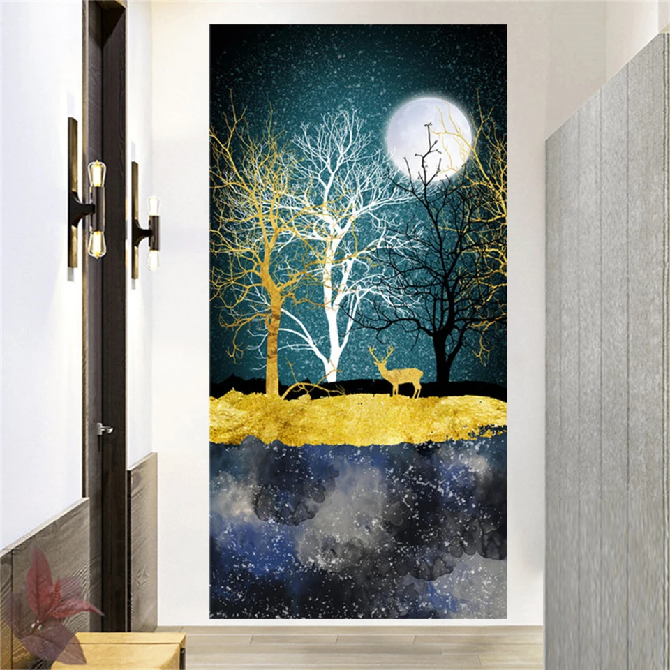 Аннотация олень diy Алмазная картина алмазной мозаики вышивка золото Луна Дерево nordic Фотографии Декор в гостиную Перевозка груза падения JX2354