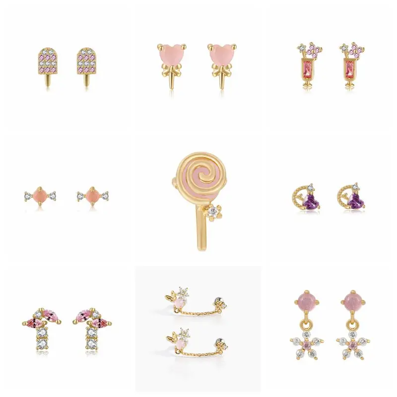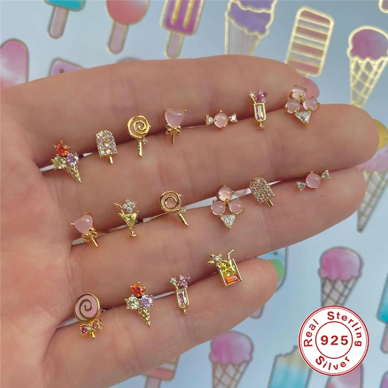 Viny, серебро 925 пробы, Стерлинговый алмаз, серьги для женщин, INS, летние милые фрукты/конфеты, серьги-гвоздики, ювелирные изделия, корейские модные серьги
