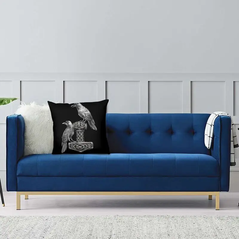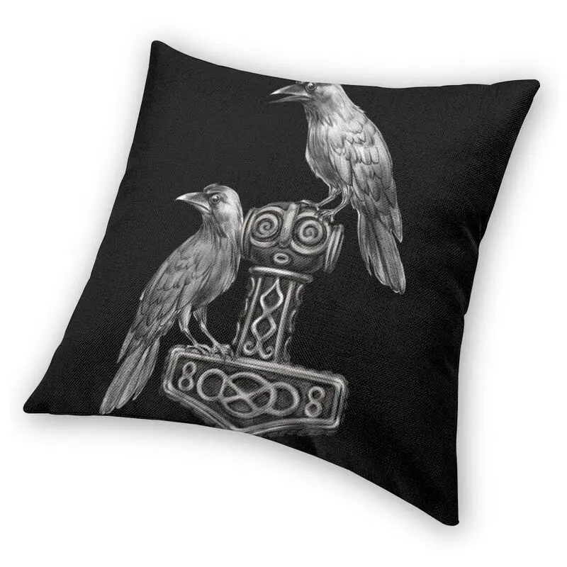 Тора молот Мьёльнир с Одина Ворон накидки на подушки, диван Гостиная норвежский викинг Бог квадратная Подушка Чехол 45x45cm