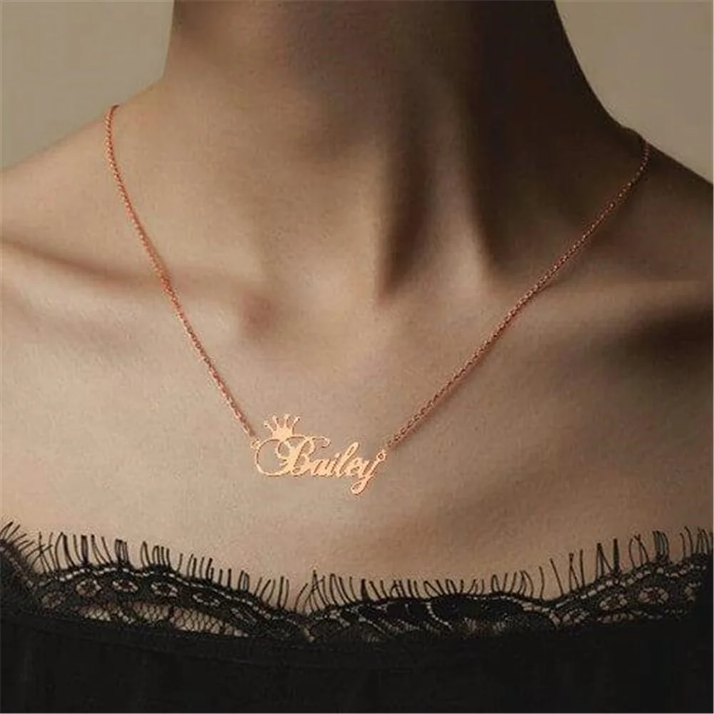 Ожерелье с именем на заказ, женское ожерелье из нержавеющей стали, ожерелье с персонализированной гравировкой короны и именной пластиной, Прямая поставка