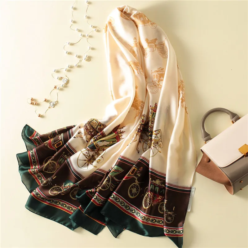 Шарф женский Шелковый, с принтом, для защиты от солнца и пляжа