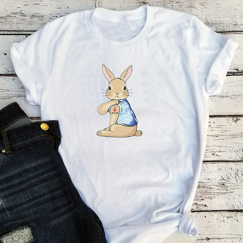 Bunny татуировки с надписью I Love футболки Mom Для женщин с принтом из мультфильма с короткими Для женщин футболка эстетику 90s пасхальные 2021 новый графический размера плюс Тройник