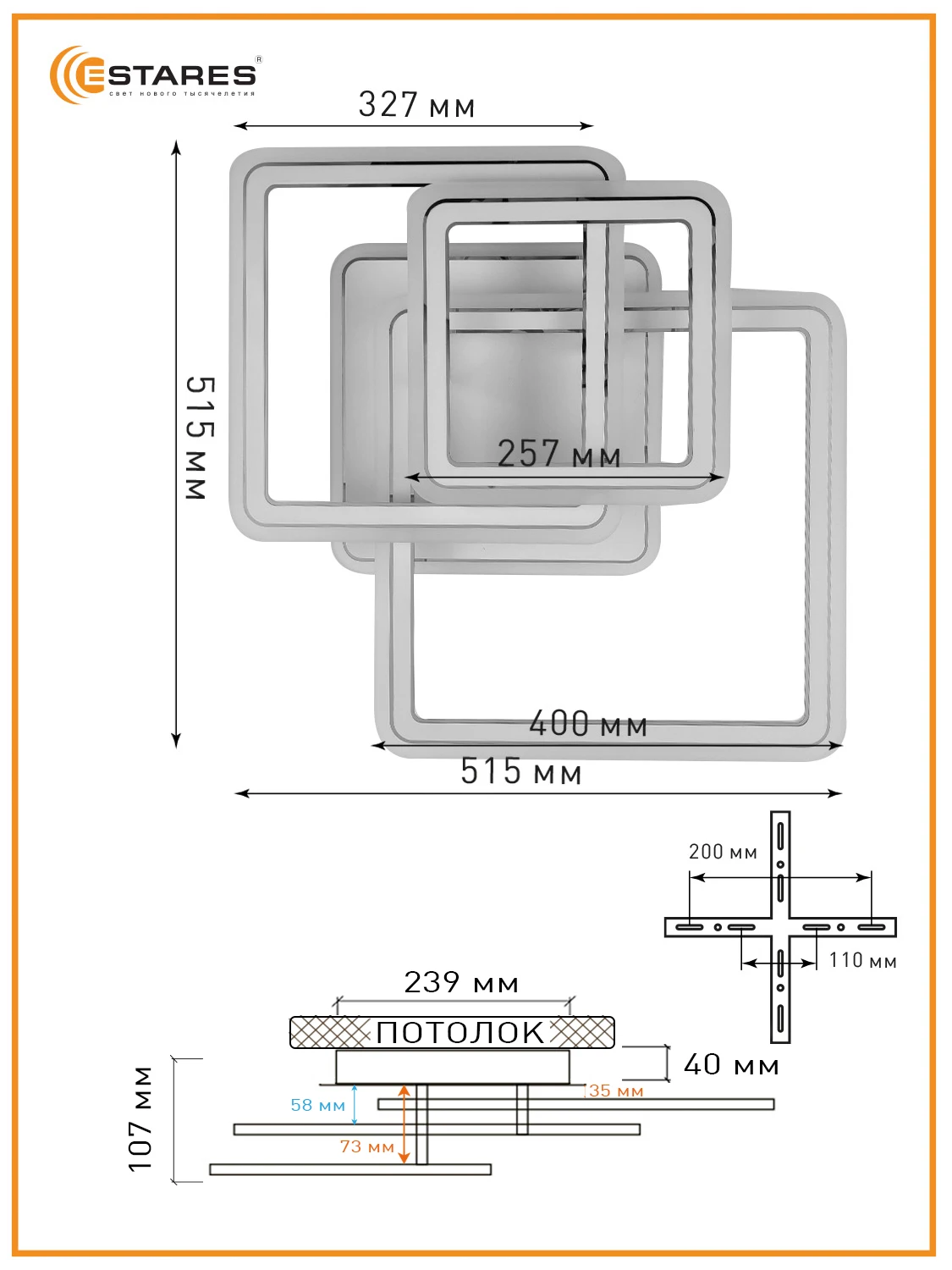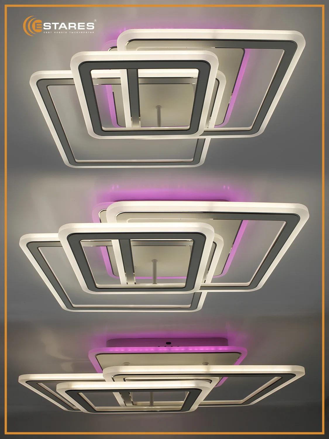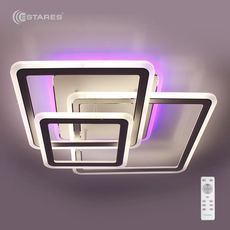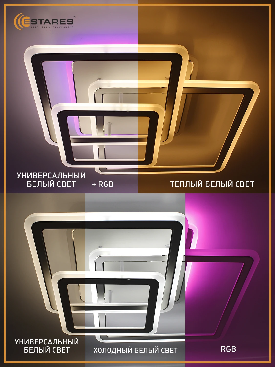 Управляемая светодиодная люстра SOLEN RGB 90W 4S-RC-520x520x110-WHITE+CHROMEWHITE-220-IP20