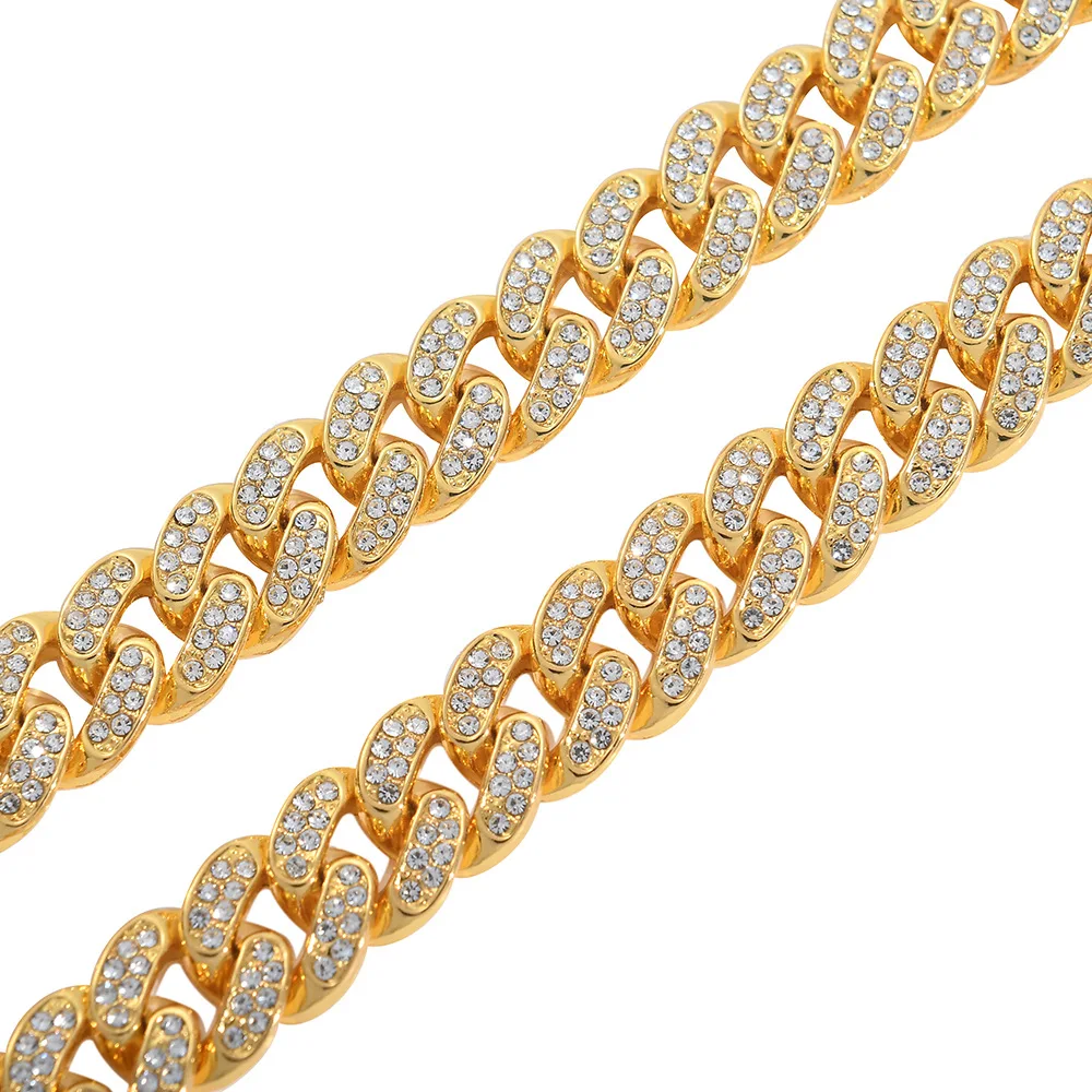 Льдом часы для мужчин и женщин в стиле хип-хоп и рэп, Майами кубинская цепь Большая Золотая цепочка ожерелье ограненные Стразы Bling комплект ювелирных изделий для мужчин