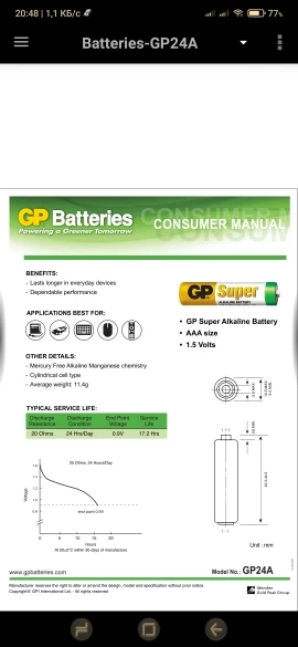 ДолговечностьТехнология низкого саморазряда батарей GP позволяет сохранять номинальную мощность при длительном хранении. Усовершенствованный щелочной электролит в виде марганцево-цинкового наполнителя обеспечивает стабильную и длительную энергоотдачу по сравнению с обычными солевыми батарейками. Алкалиновые батарейки GP используются в широком температурном диапазоне: -30 до +50°C. Соответственно, вы будете всегда обеспечены надежными и безотказными источниками энергии.