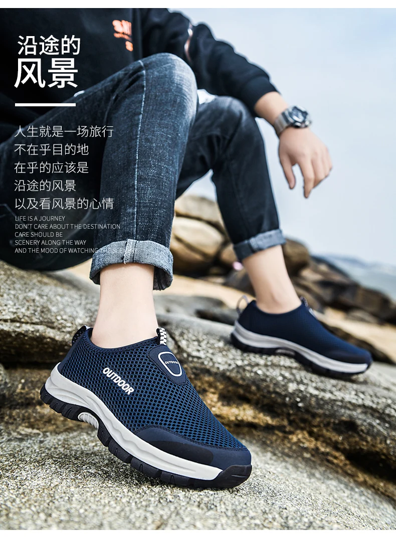 Кроссовки мужские сетчатые для вождения, Повседневные Дышащие, Нескользящие, для скалолазания, прогулок, летняя Уличная обувь