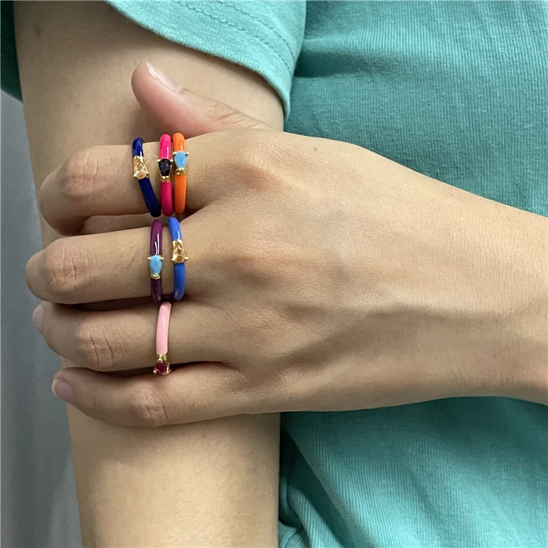 Women JewelryMinimalist Thin Circle Gem Rings Jewelry Carving S925