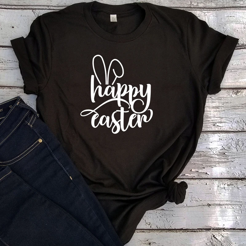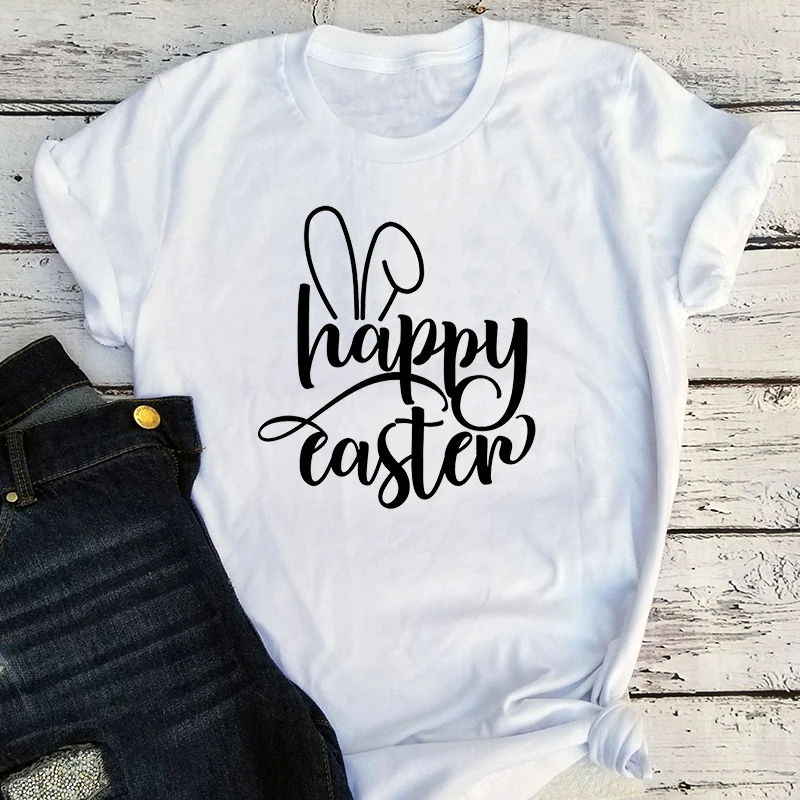 Счастливая Пасха, рубашки, Женская кавайная одежда, эстетическая модная одежда с ушками кролика, 2021, Пасхальная летняя рубашка с круглым вырезом