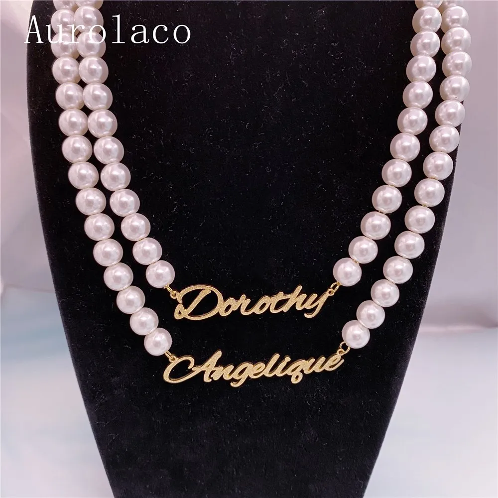 AurolaCo индивидуальное имя ожерелье персонализированное жемчужное ...