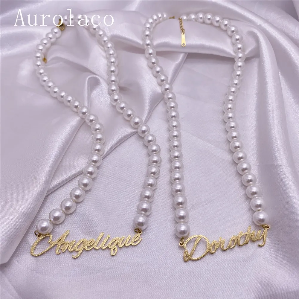 Ожерелье с именем на заказ AurolaCo, жемчужное ожерелье, Золотая по...