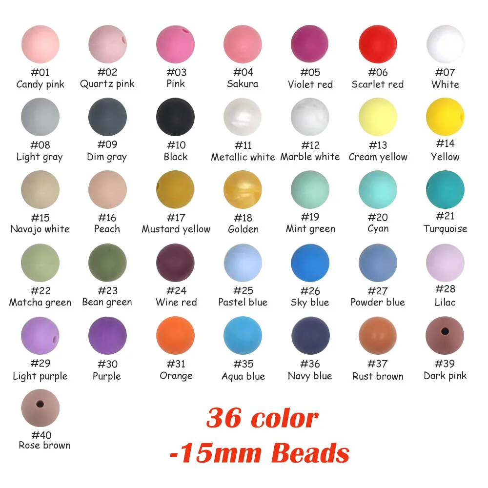 -Силиконовые Прорезыватели для зубовКоличество: 100/200/500 штРазмер: 15 мм * 15 мм * 15 ммЦвета: 36 цветов-Вы можете оставить необходимый цвет в комментарии при размещении заказа.-Стимулирует Сенсорное, визуальное и двигательное развитие.-Силиконовый Прорезыватель обеспечивает мгновенное облегчение прорезывания зубов и массаж десен.-100% BPA-free,FDA одобренный пищевой силиконовый бисер. Без фталатов, кадимов, свинца, ПВХ или металлов.-Легко моющиеся. Рекомендуется дезинфицирующие салфетки для пустышки. Стирать перед использованием! Никогда не оставляйте товар без присмотра