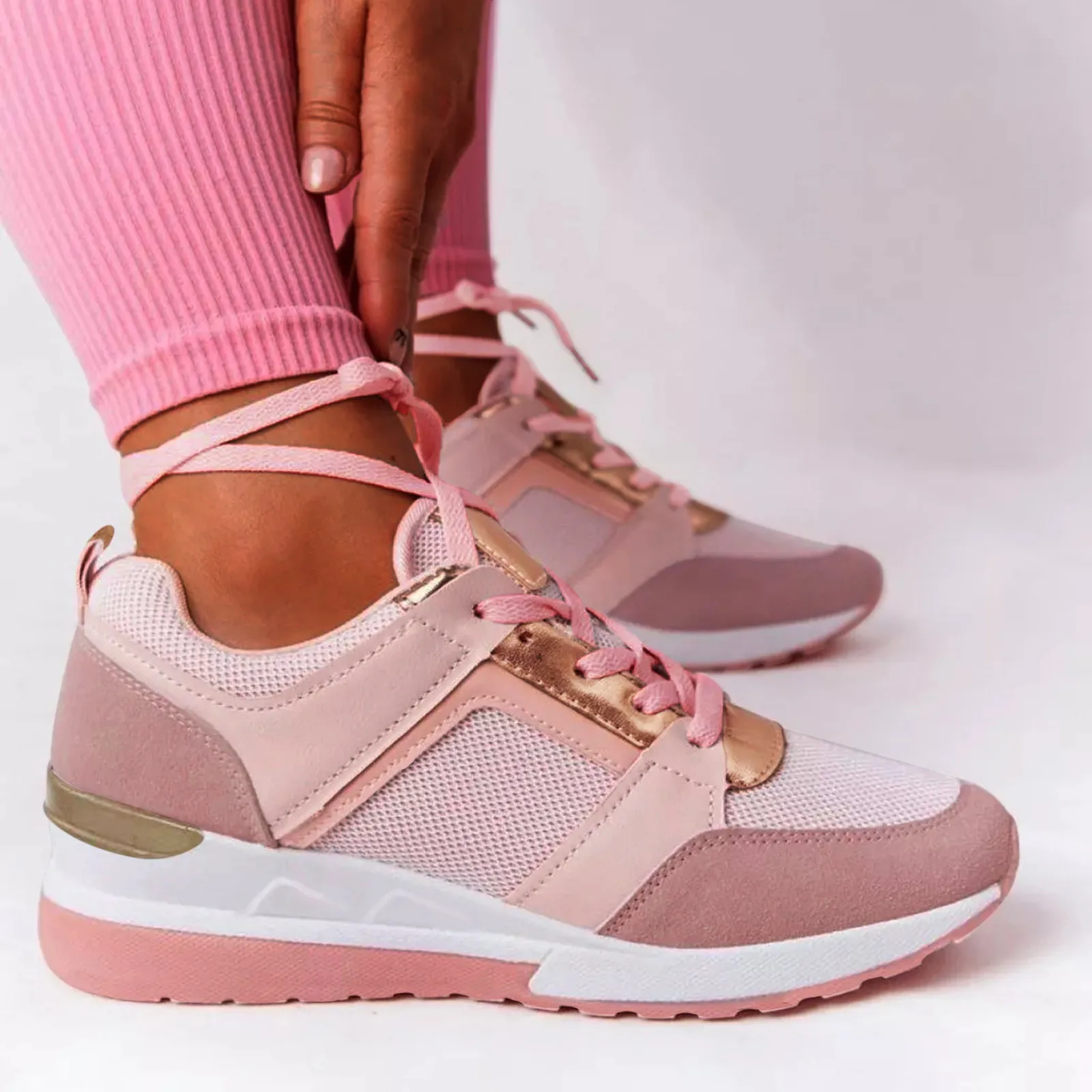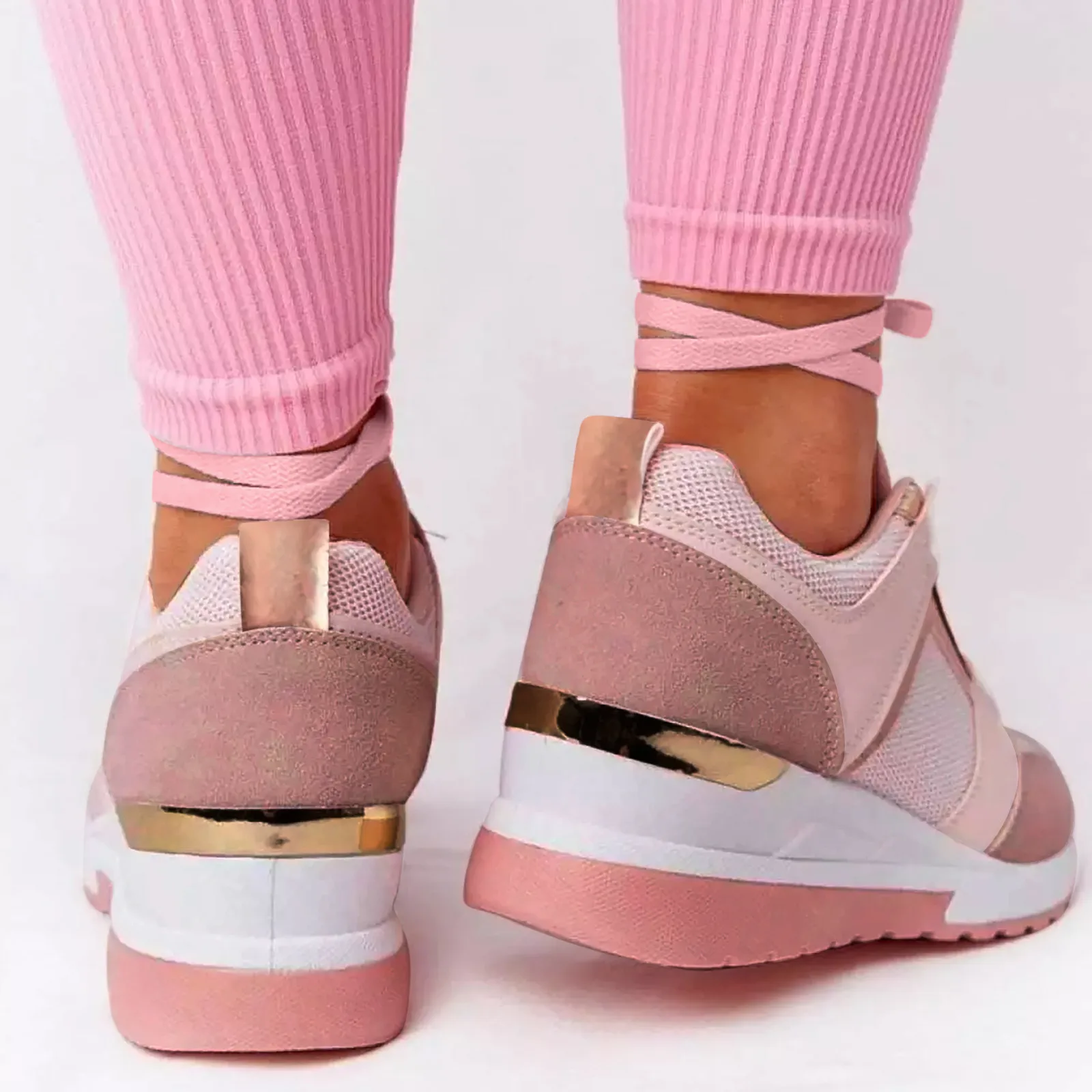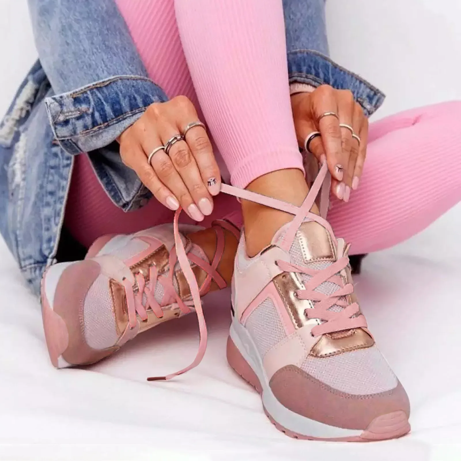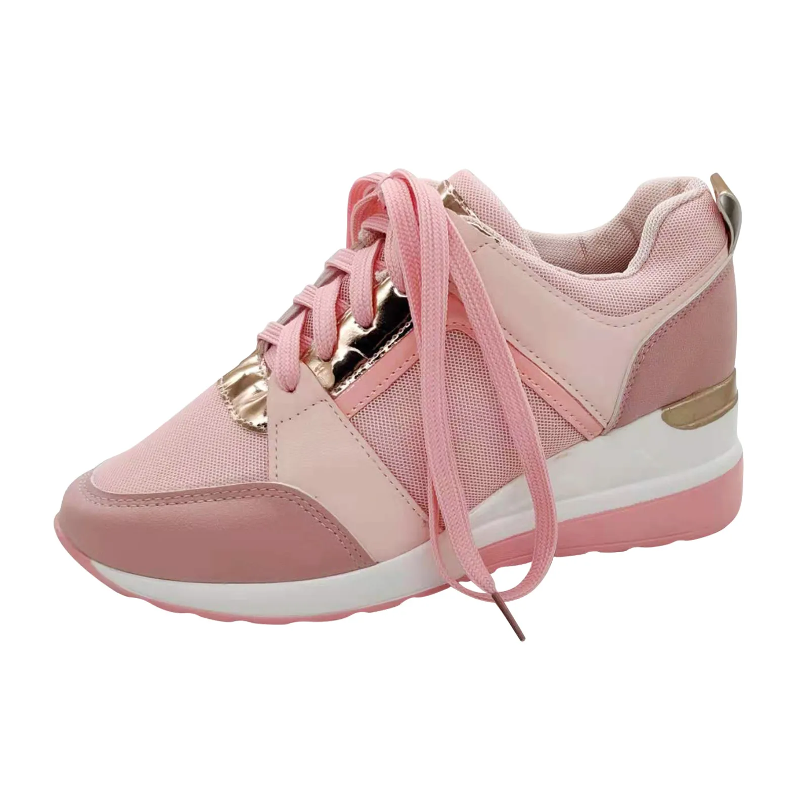 Женские кроссовки на танкетке; Повседневная обувь; Сетчатая дышащая прогулочная обувь на шнуровке