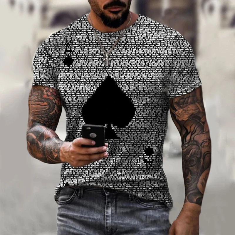 Летняя популярная модная мужская футболка с 3D-принтом букв покера,...