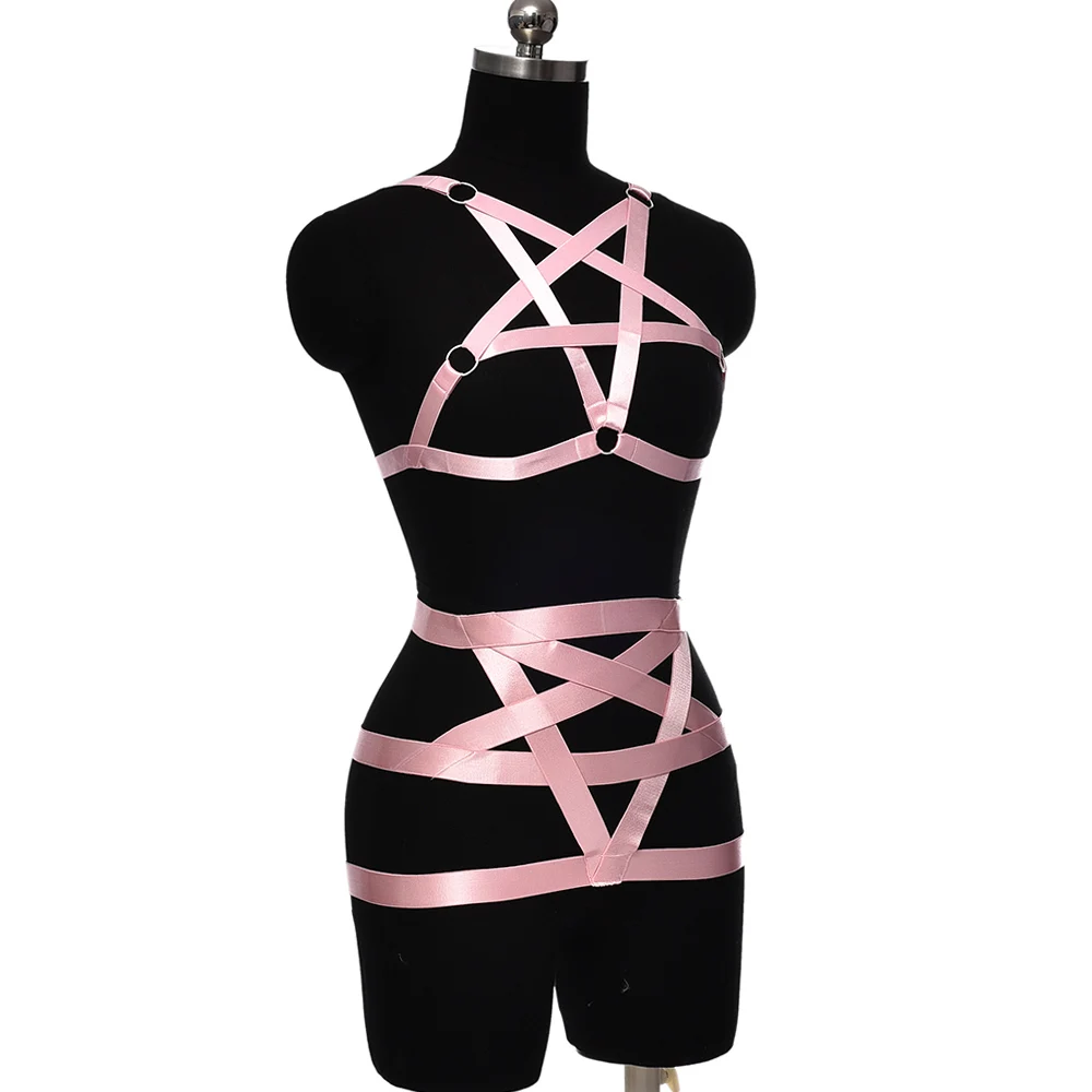 Женский бюстгальтер с пентаграммой, черная обвязка для тела