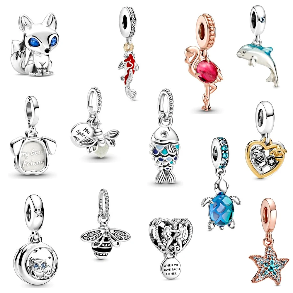 Женские Ювелирные изделия из серебра 925 пробы, подвески в виде божьей коровки, лошади, животных, серебряные бусины, маленькие аксессуары в виде животных, подвески для украшений