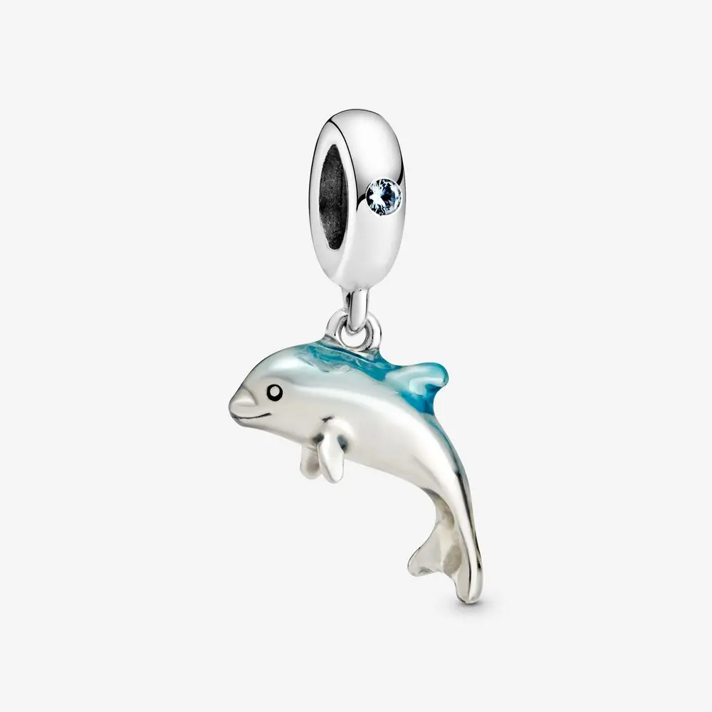 2020 новинка, серебро 925 пробы, синий мерцающий дельфин, подвеска-...