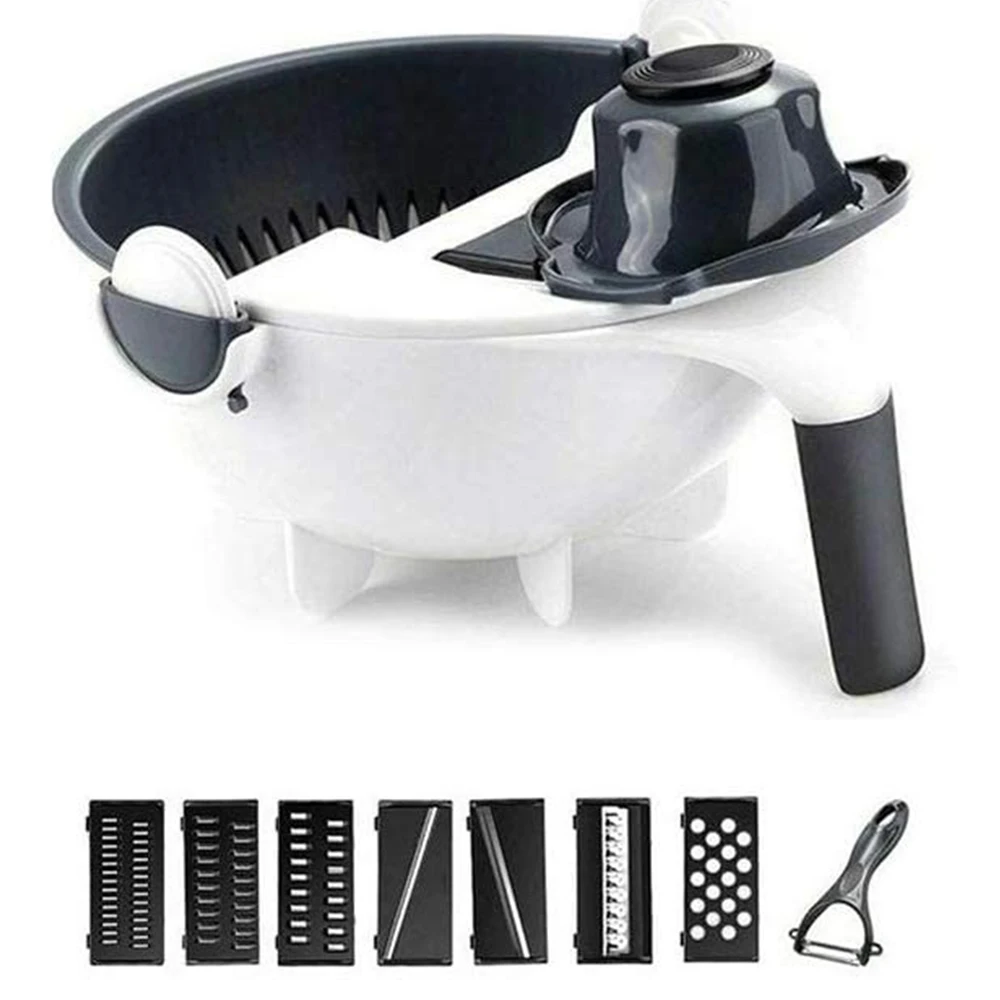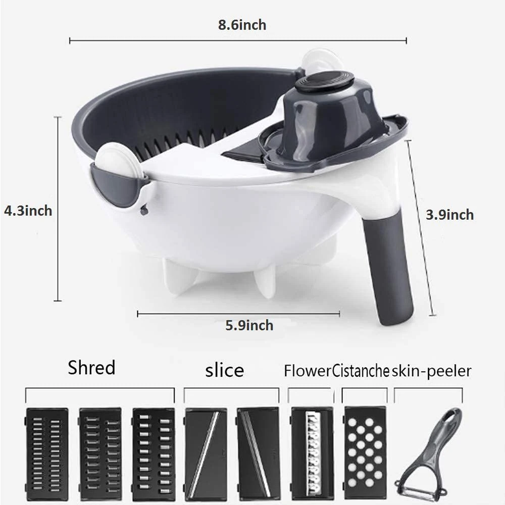 Поворот овощерезки с сливной корзиной 9 в 1, слайсер, многофункциональная волшебная кухонная терка для овощей, измельчитель фруктов, слайсер