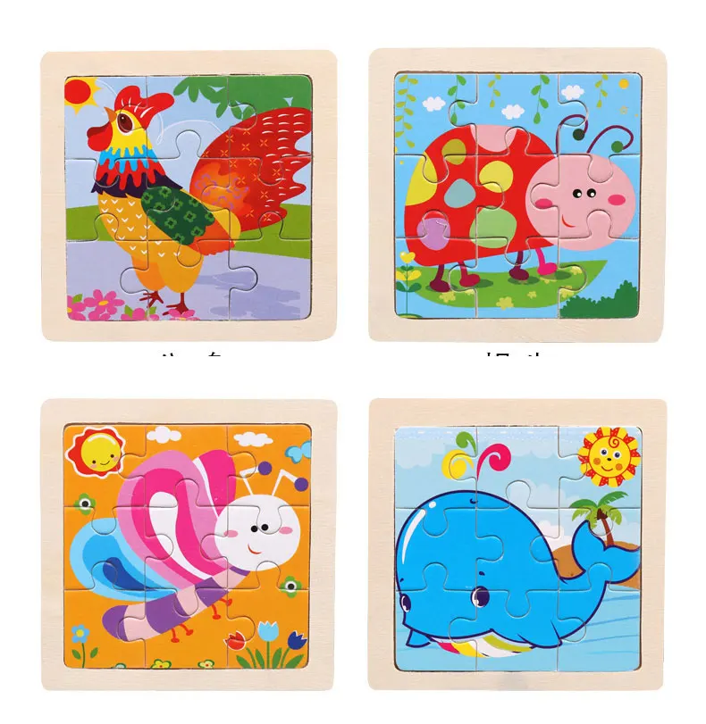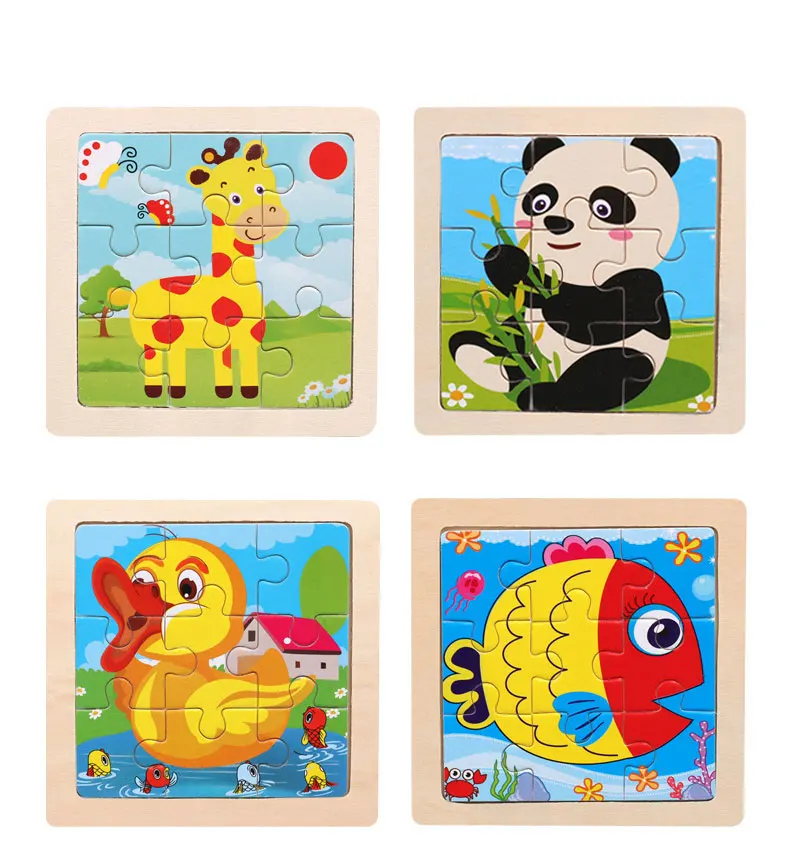 Детские игрушки, деревянный 3D-пазл, Обучающие Мультяшные животные в форме танга, интеллект 234 лет, головоломка Монтессори, обучение детей