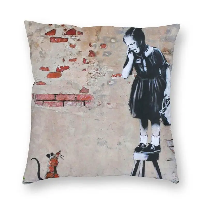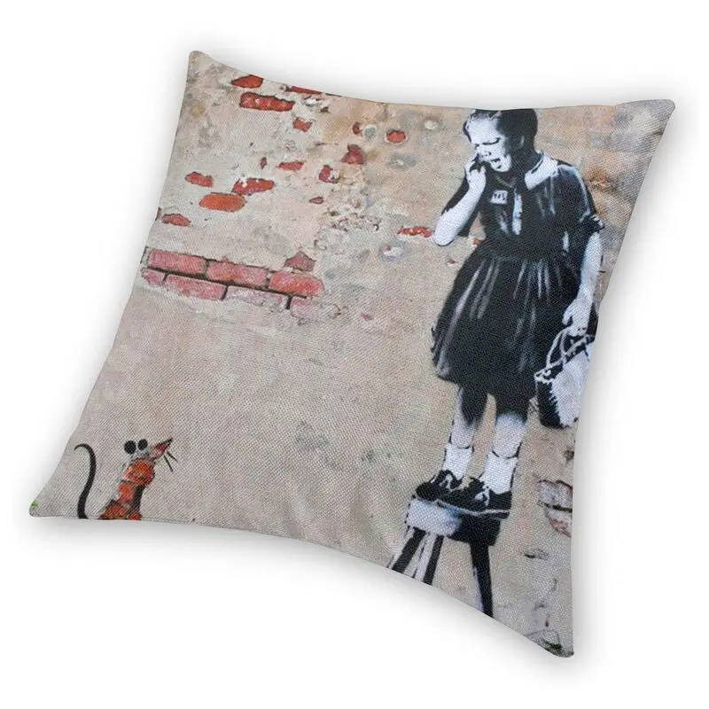 Мышь или девочки на табурет Подушка Чехол домашний декоративный изготовленный на заказ Бэнкси "поп-художественная подушка крышка размером 45*45 см мультипликационным мотивом для дивана
