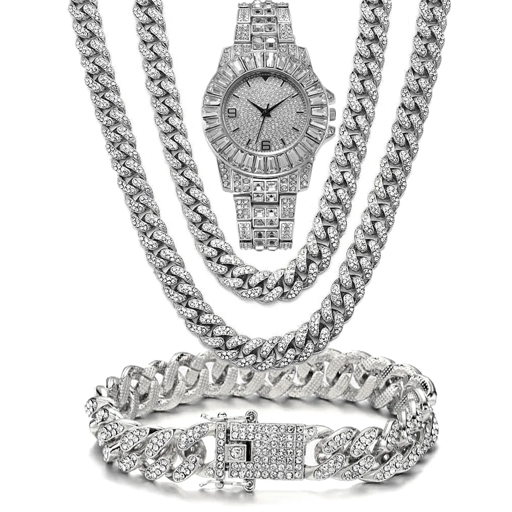 Часы унисекс из кубинской цепи Майами в стиле хип-хоп