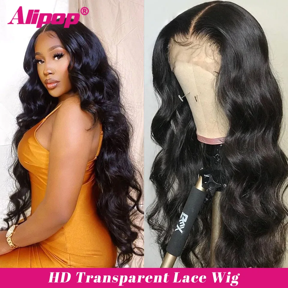 Парик женский из натуральных волос, волнистый, прозрачный, 28 дюймов, 250%