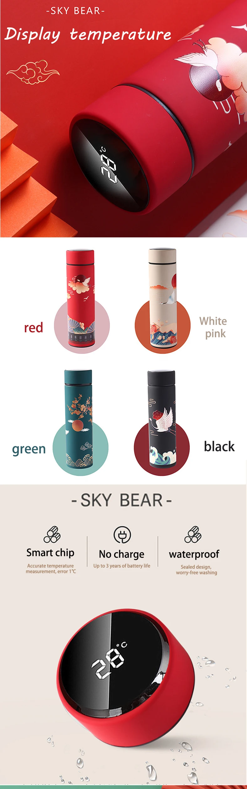 Высококачественный Интеллектуальный термос, кофейная бутылка в китайском стиле, светодиодный сенсорный дисплей, Термокружка Из Нержавеющей Стали, чайная кружка, бутылки для воды