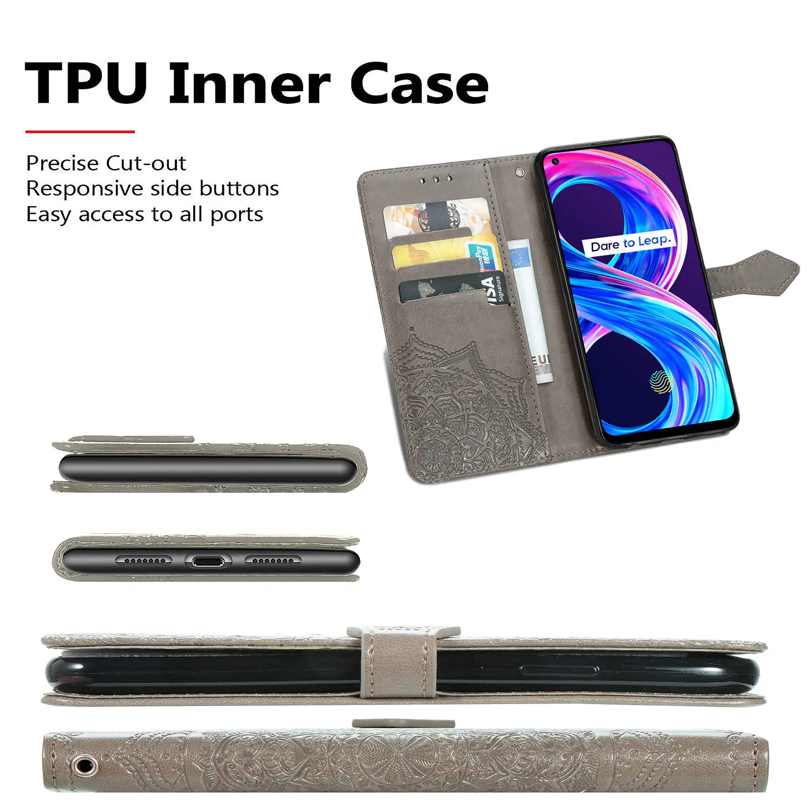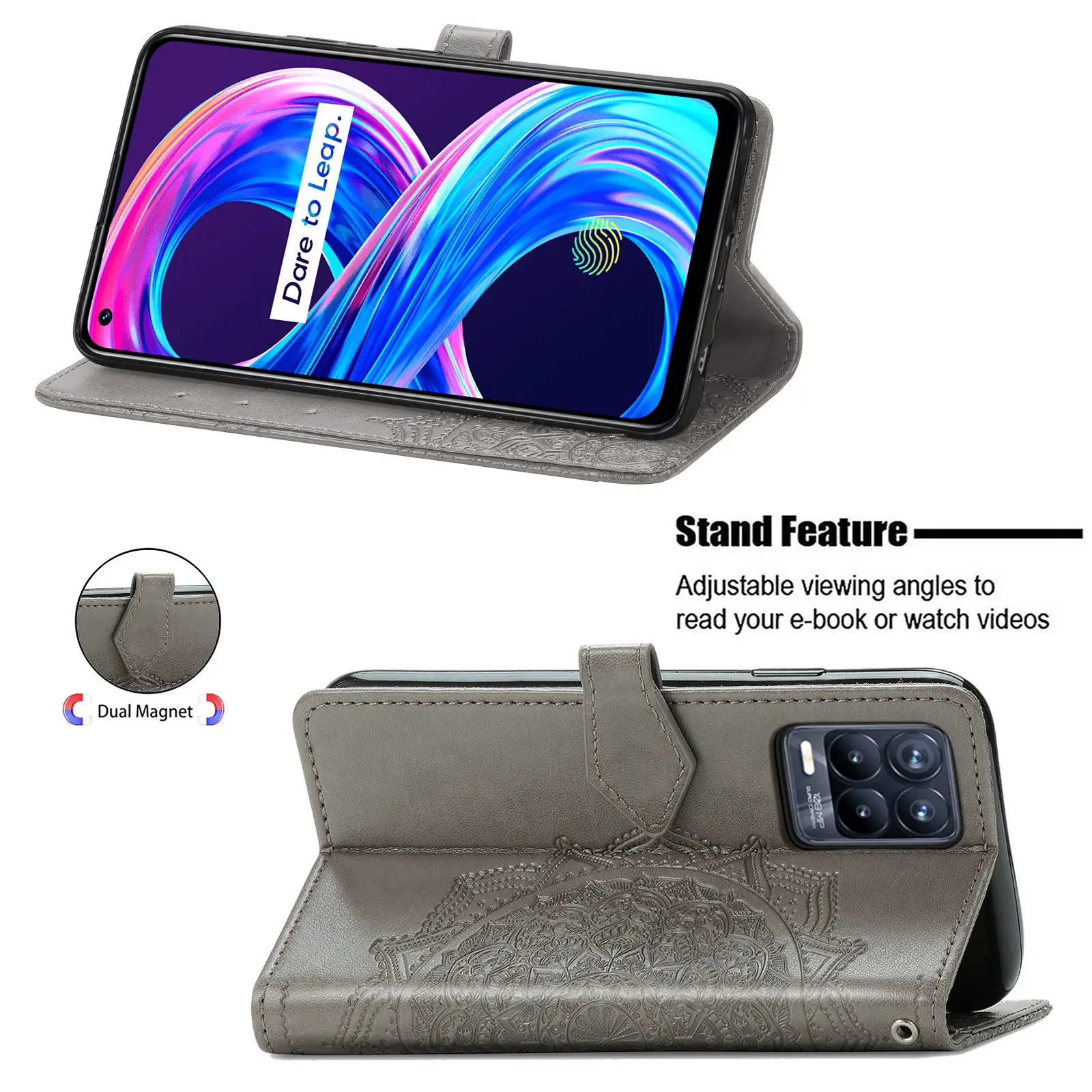 Чехол Realme8 Pro для OPPO Realme 8 Pro RMX3081, кожаный чехол с откидной крышкой, чехол для телефона с объемным цветком мандалы, чехол для Realme 8 RMX3085